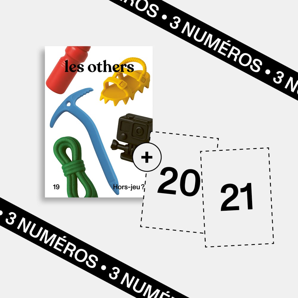 Les Others Magazine est une revue indépendante pour les passionnés de nature et d'aventure. Chaque numéro est organisé autour d’un thème, défini en amont par notre équipe de rédaction, ce thème est ensuite discuté, tordu, cousu et décousu pour être mis en perspective avec une sélection de sujets directement liés à l’aventure : de la photographie à la littérature en passant par la géographie et l’exploration. Les Others Magazine est une revue collaborative. Chaque numéro est signé par une vingtaine de contributeurs et contributrices qui travaillent ensemble pour en faire un concentré d’inspiration au voyage aussi multiple que possible.