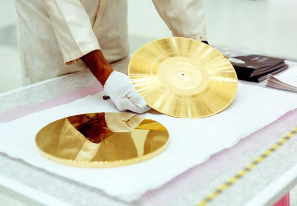 En 1977, les sondes Voyager I et II ont décollé pour une expédition sans retour au-delà du système solaire. Profitant du voyage, une équipe de la NASA a glissé à bord un best of de musique, de sons, de voix et d’images enregistrés sur un vinyle plaqué or, le Golden Record. Un condensé de la Terre et de l’humanité, à l’attention d’hypothétiques formes de vie extraterrestres.